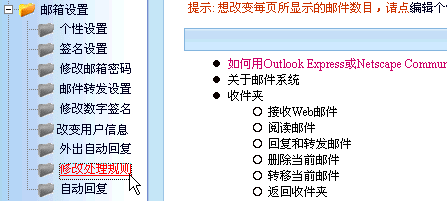 1> 登录邮箱进入首页,点击"邮箱设置"下的"修改处理规则"。