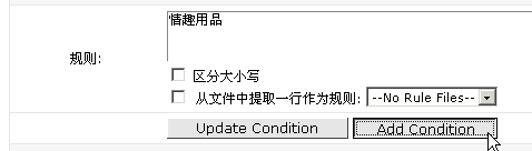 4> 选择好范围后,进行制定规则。填入"性用品"并点"Add Condition"
