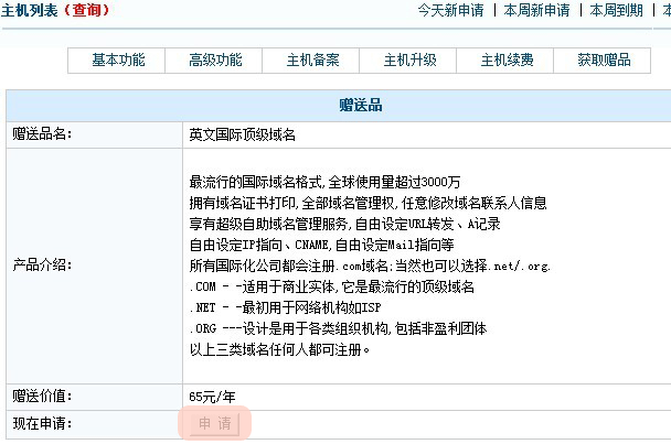 五、选择您需要开通的赠品,申请即可按常规申请,申请过程中不另外扣除款项。